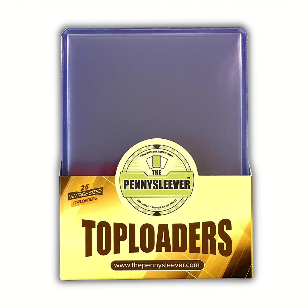 The Pennysleever has toploaders in sizes from 35 pt to 360 pt, as well as vintage sized toploaders. Want to spice things up? Try out some colored border toploaders.